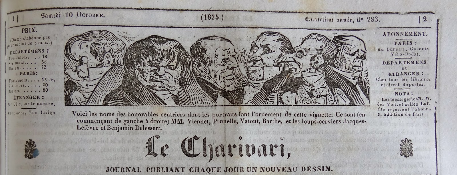 Jacques Lefèvre et Benjamin Delessert. Pour la première fois, la Légende change. Le 11 Octobre elle devient : Journal publiant un dessin toutes les fois que la censure voudra bien le